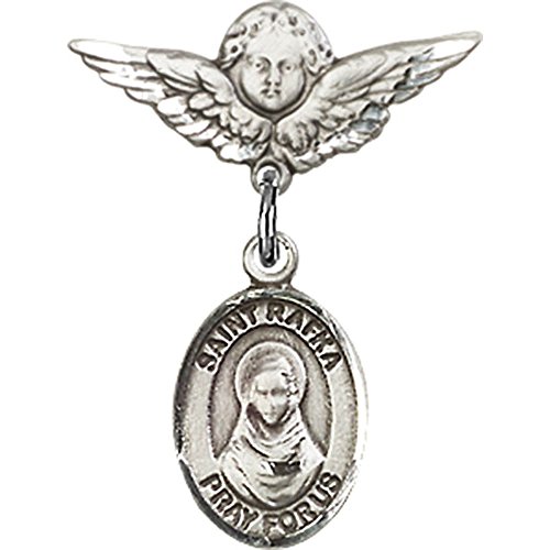 -. Title : Sterling Silver Baby Badge with St. Rafta Charm and Angel w/Wings Badge Pin 7/8 X 3/4 inches