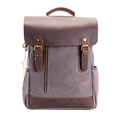 -. Title : Vintage Leather Canvas Backpack, WalkingToSky Retro Canvas School Rucksack Backpack up to 15.6 inch Laptop Bag, Travel Bag for Man Outdoor Daypacks