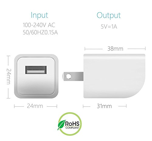 Protection Against Over-Charging, Over-Currents, and Over-Heating. Input: AC 100-240V - Output: DC 5V m 1000 mAh