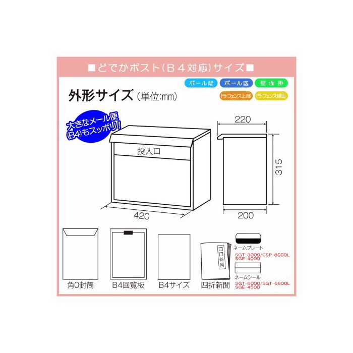 원본상품명:ケイジワイ工業 KGY サントミ どでかポスト SGT-6000 ヘアライン 角0封筒(B4用)投函可