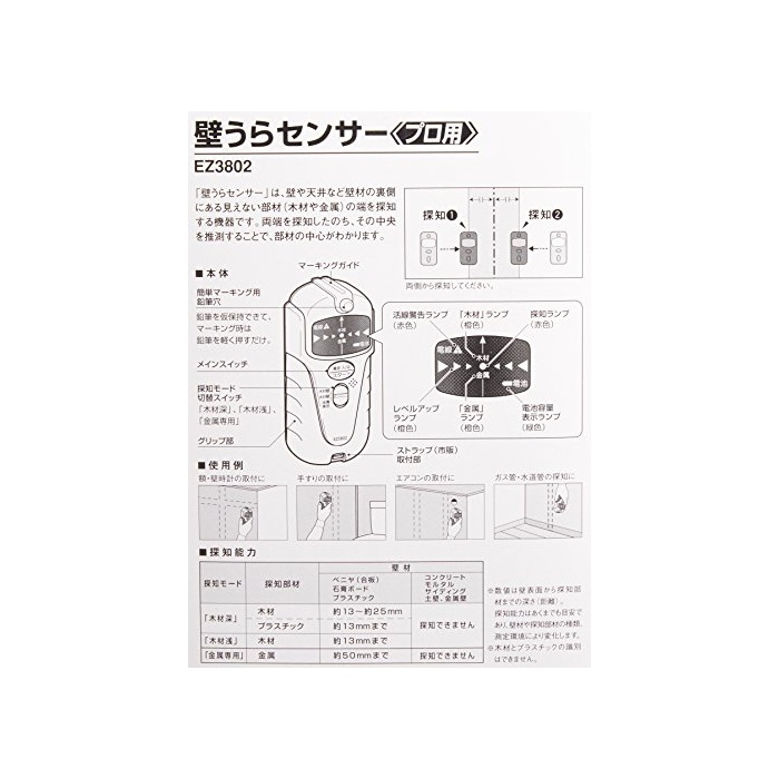원본상품명:Panasonic(パナソニック) 壁うらセンサ 材用 プロ用電動工具 乾電池式 EZ3802