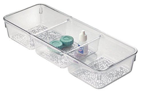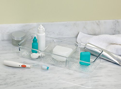 mDesign Bathroom Cabinet Organizer Tray for Vitamins, Supplements, Health Products - 3 Compartments, Clear