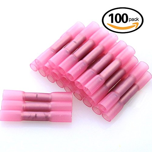 Glarks 100pcs 22-16 Gauge Butt Splice Nylon Heat Shrink Waterproof Quick Disconnect Electrical Insulated Crimp Terminals Connectors Assortment Kit