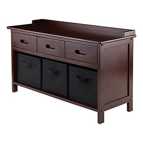 -. Title : Winsome Trading Adriana Storage Bench with 3 Baskets in Antique Walnut
