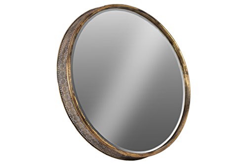 Urban Trends 94242 Metal Round Wall Mirror, Floral Pierced Metal Design Sides Metallic Antique Gold Finish
