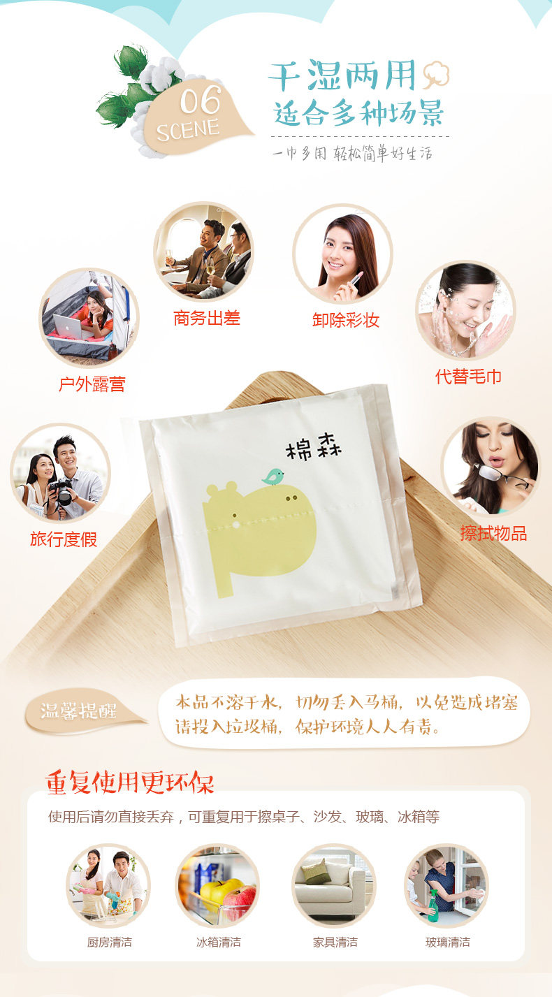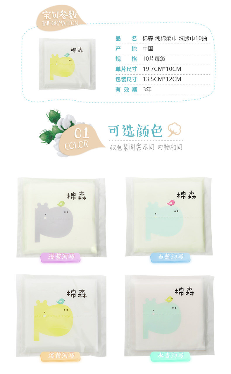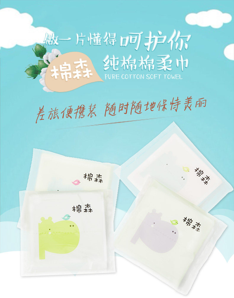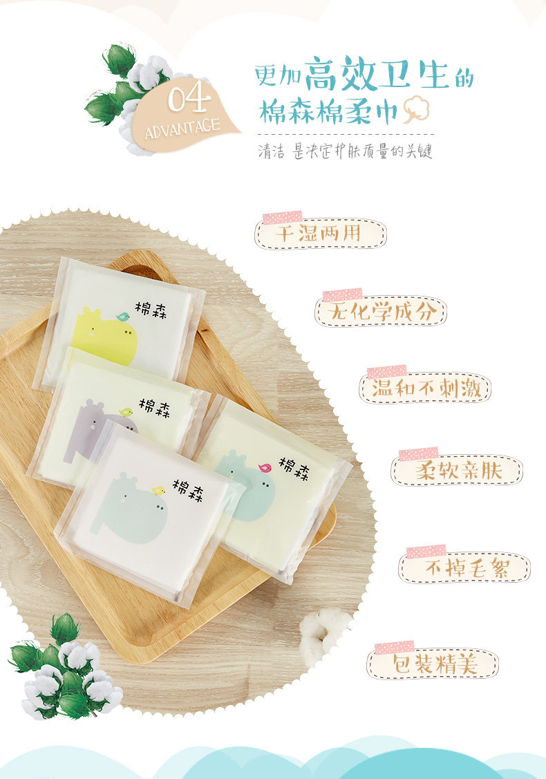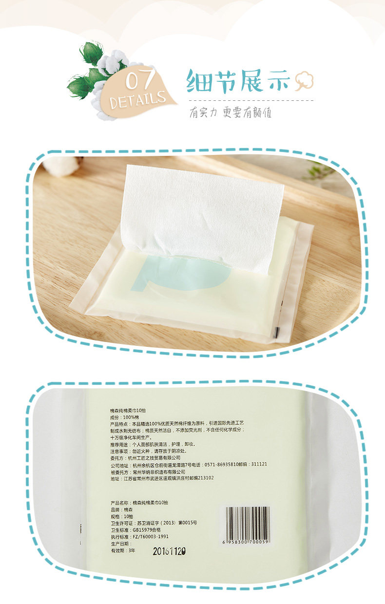棉森纯棉柔巾干湿两用一次性洗脸巾卸妆巾出差旅行便携小包装10片