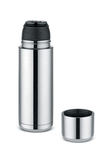 Double wall vacuum flask in 18/10 stainless steel and thermoplastic resin.