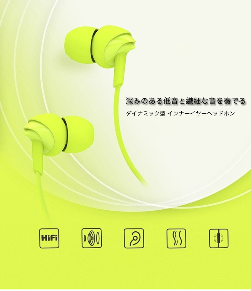 ★「カラー」ホワイト(白)、ブラック(黒)、グリーン(緑)、ピンク★「商品特徴」ハウジングに制振ABSを採用。不要な振動を抑えることで低音のスムーズなレスポンスとクリアな中高音を再現します。広帯域再生が可能な新形状の振動板を採用することで、小型ながら高感度のドライバーユニットが色鮮やかな音楽を再生します。振動板を新たに開発し、振動板の有効面積を最大化することで高い感度を実現します。耳からはずれにくい形状によって装着安定性を向上。長時間のリスニングも快適に楽しめます。耳の形に沿いやすいイヤーフィットブッシングにより、外れにくく安定した装着性を実現しました。★「キーワード」イヤホン イヤフォン ダイナミック型 インナーイヤーヘッドホン マイク・リモコン付 通話対応 スマホ対応 多機種適用 広帯域 小型 高感度 装着安定性
