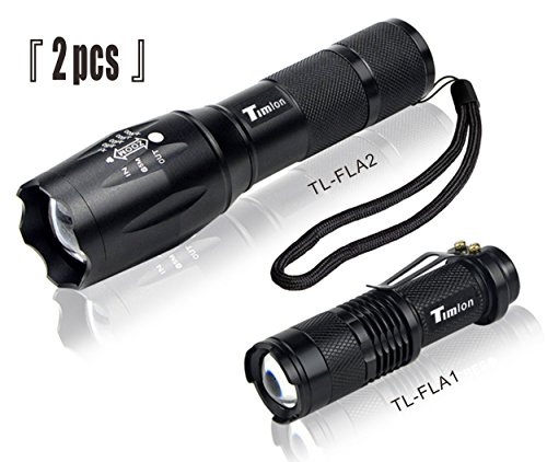 Timlon2 Pack Ultra Bright Tactical Flashlight Cree LED Adjustable Focus Zoom Flashlight Water Resist Durable Aircraft Aluminum Alloy for Self Defense, Police, and Military use.