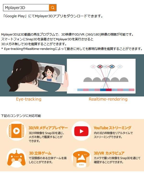 | 普段はスマートフォンの保護ケースとして使用し、3D/VRコンテンツを視聴する時に、ケースを液晶面側に取り付けるだけ!HMD(ヘッドマウントディスプレイ)やVRゴーグルが無くても3D/VRコンテンツをお楽しみいただけます。 |