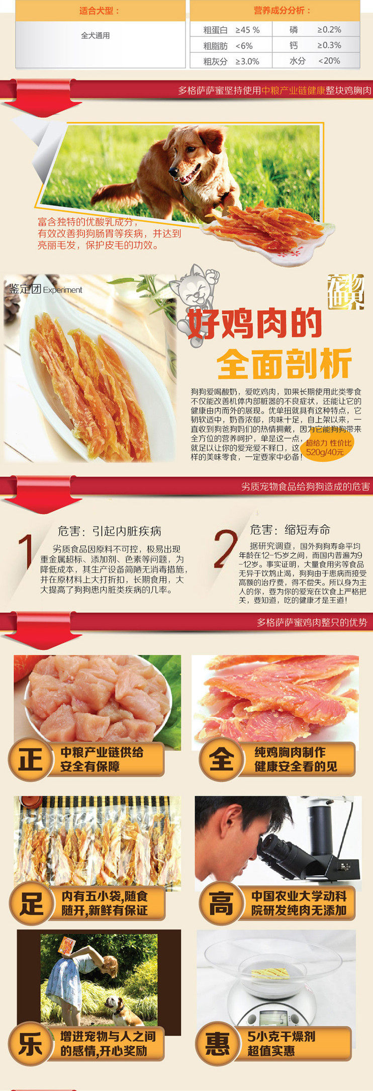 This product is rich in essential amino acids for growth of pet, suitable forgrowth in the pet food. Low fat, low calorie, prevent excessive edible fat pet.Real life food. The dog stomach normal digestion and absorption, to avoid the dog physiological degeneration. The main ingredient of the product: