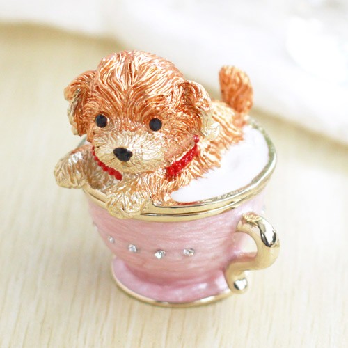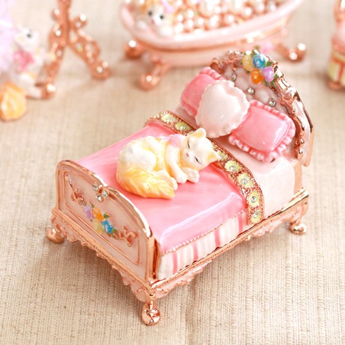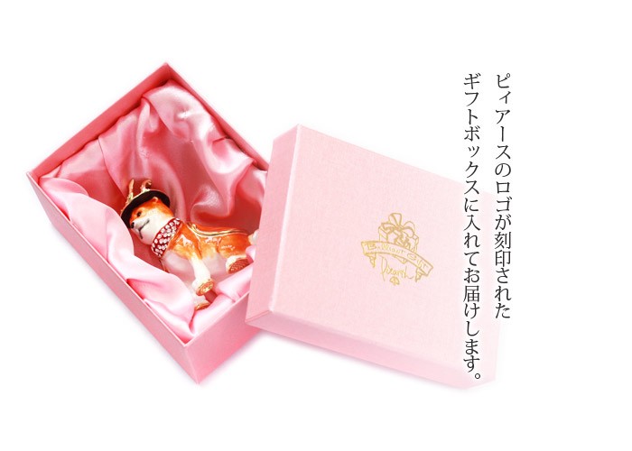 | ジュエリーボックスと言えば、指輪やピアス、ネックレスなどのアクセサリーを入れる引き出し型のケースを思い浮かべる方が多いかもしれません。 ピィアースのジュエリーボックスは、動物や花などをモチーフに作られ、合金製でずっしりとした重さがあります。また高品質のクリスタルガラスを贅沢に使用。まるでジュエリーボックスそのものが宝石のような、高級感溢れる仕上がりです。 小物入れとしても使えるように開閉口には磁石が取り付けてあり、アクセサリーなどなくしやすいアイテムの収納ができます。キラキラと美しく輝く宝石箱は、そのまま飾って楽しめるインテリア雑貨として多くの方に愛されています。 国内トップクラスのジュエリーボックスメーカーであるピィアースは、2004年ごろから本格的に宝石箱の製造を始め、現在のジュエリーボックスはなんと300種類以上。大規模展示会でもご好評いただいており、全国有名百貨店でも販売されています。 自社工場でひとつひとつ丁寧に手作りし、原型作成、研磨、加工、着色、小さなクリスタルガラスの取り付けなども全て手作業で行われるこだわりのハンドメイド品。完成後は厳しい検品の後、丁寧に梱包作業をしお客様にお届けしております。 ピィアース商品は、全国有名百貨店および全国有名宝石店チェーンにてお取り扱いいただいている高品質商品です。 ★自分へのご褒美に…コレクションして並べて飾ると、さらにかわいらしさUP! ★恋人へのプレゼント…中にアクセサリーを入れて、サプライズな贈り物として ★家族への感謝ギフト…お母さんや姉妹へ、日頃のありがとうの気持ちを込めて ★誕生日プレゼント…お友達の喜ぶ顔が見たいから、いつもと違うキラキラギフトを ★小さな女の子へ…まるでお姫様が使っているようなキラキラ宝石箱は女の子の憧れ! |