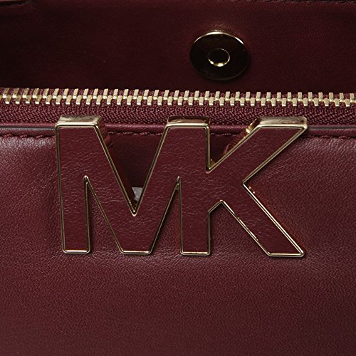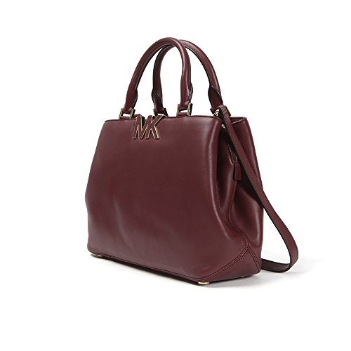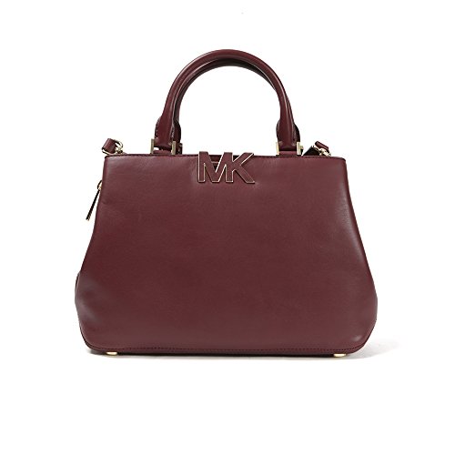 -. Brand : Michael Kors -. Color : Claret -. Department : womens -. EAN : 0888235576985 -. Feature : Premium Buttercalf Leather; Gold tone hardware / Front and back compartments with magnetic snap closure, zip pocket, and 2 slip pockets each inside / Center compartment with top zip closure and slip pocket inside / Approx. 12(L) x 9(H) x 4(D)"; 4.5" handle drop -. Model : 30F4GRES2L -. MPN : 30F4GRES2L -. PackageQuantity : 1 -. PartNumber : 30F4GRES2L -. ProductGroup : Apparel -. ProductTypeName : APPAREL -. Size : One Size -. Title : MICHAEL MICHAEL KORS Signature MK Leather Satchel, Claret -. UPC : 888235576985
