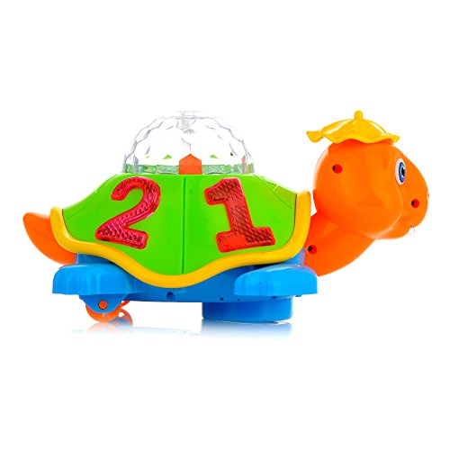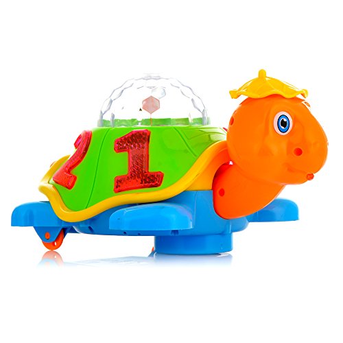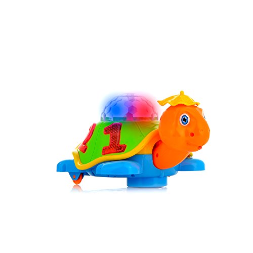 -. Binding : Toy -. Brand : classic glow -. EAN : 0619730115085 -. Feature : KIDS TURTLE TOY: Baby can interact with the turtle by pressing the buttons to hear sing-along songs, melodies, fun sound effects and cleaning phrases. / EASY TO USE: The baby safe turtle toy is durable construction, environmental material. Safe for small children. / ENHANCED INTERACTIVE: When playing with children, the parents can tell story for the children about this animals to improve the animal protection awareness. / DIRECTIONS: Bumps with Objects and Turns Another Way. ON/OFF switch for controlling the tortoise. / BATERRY OPERATED: Requires 3 AA Batteries Included -. IsAdultProduct : 0 -. Label : classic glow -. Manufacturer : classic glow -. ProductGroup : Toy -. ProductTypeName : TOYS_AND_GAMES -. Publisher : classic glow -. Studio : classic glow -. Title : Light Up Turtle Toy with Lights and Sound for Baby and Toddler Battery Operated -. UPC : 619730115085