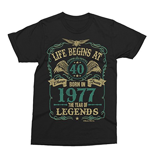 Life Begins At 40 Herren T-Shirt - BORN In 1977 Year of Legends 40th Geburtstag Gift - von Buzz Shirts