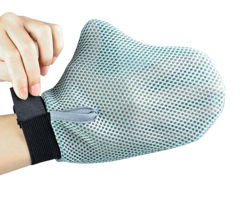 1, the front of the glove massage rubber palm, soft and flexible palm.