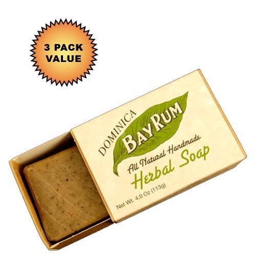 Scented with pure essential oils from plants and flowers native to Dominica, "The Nature Island of the Caribbean." Made entirely by hand in small batches using all natural ingredients: coconut oil, soybean oil, purified water, bay oil, ground bay leaf, and castor oil. Ground Bay Leaf (a light exfoliator) enhances the pure essential oil of bay, which creates a soothing, healing and relaxing bathing experience. 4 oz. bar.