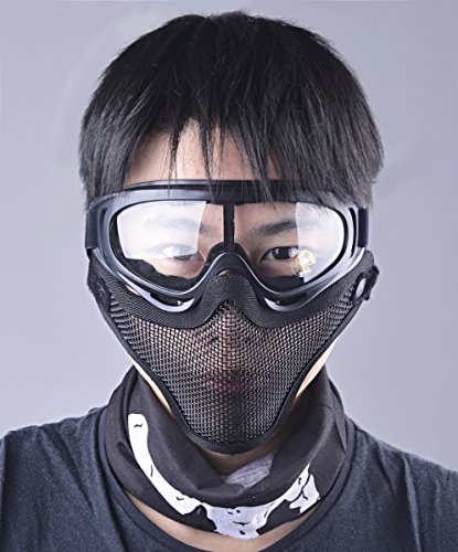 -. Title : OUTGEEK Airsoft Half Face Mask Steel Mesh and Goggles Set