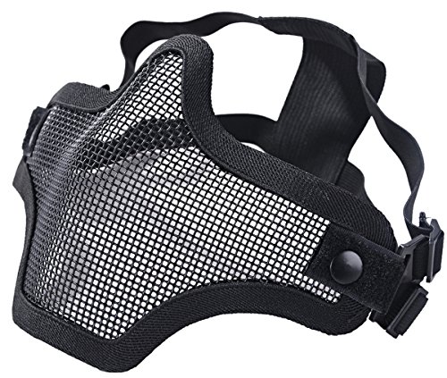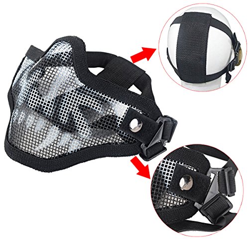 -. Feature : PACKAGE INCLUDES: 1 x steel mesh mask ,1 x tactical goggles / MATERIAL: Airsoft Mask: low-carbon steel, Goggles: ABS (Acrylonitrile Butadiene Styrene) plastic / ONE SIZE FITS ALL (Kids and Adults): The skull design is very cool,with 2 elastic adjustable elastic strap for a better fit. / LIGHTWEIGHT & FOLDABLE DESIGN: The airsoft mask can be gently bent to fit to your face better; Superb air ventilation prevents fogging from the mesh part / SUITABLE FOR A WIDE RANGE: Our PC ballistic lens can provide enough protection to BBs under 310 fps in 5 meters. Perfect for airsoft, hunting, paintball, shooting and any other outdoor activities