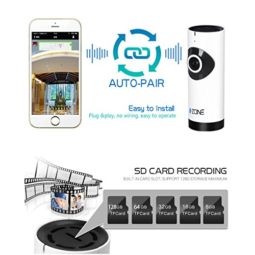 -. Feature : 128G Super Large local storage: Excitement of long time moment to your friends by which you can share the exciting moment to your friends and family / 180 degree panoramic view: Give you want to see everything.Motion Detection It supports motion detection, and can auto-capture dynamic images. After images comparing it / Stunning HD 720P (1280TVL) Video:High-definition image,Intelligent videoing,It supports auto-recording, and can quickly locate pictures by timeline,wireless baby monitor,Quick WiFi, 3G or 4G network setup via iPhone or Android Smartphone using, it will help you stay connected with what you love,Video, audio, alerts on smart phone and tablets / Security camera Master mode: Make your camera more secure, the master decided to connect the camera / A-ZONE IP CAMERA: A-zone supplies Best after sales service with 90days return and 12 month free warranty.You can contact us anytime via email