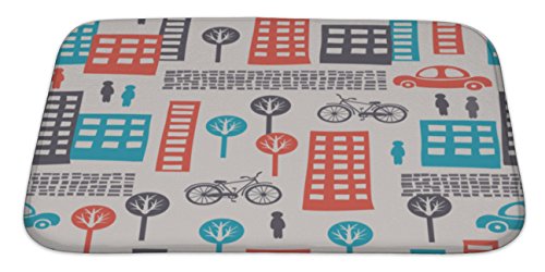 Gear New No Slip Microfiber Memory Foam City Pattern Bath Rug Mat, 34" X 21"