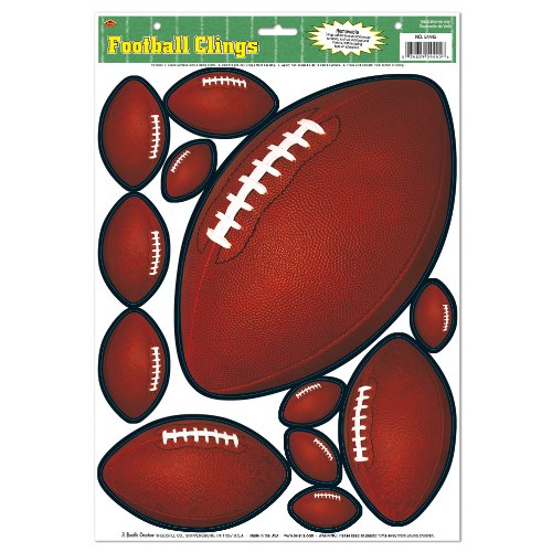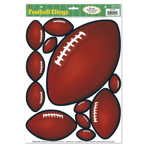 Studio : The Beistle Company Publisher : The Beistle Company Binding : Toy Product Description Beistle 54445 Football Clings. The sheet includes 12 pieces of window clings in assorted sizes. They are all brown footballs with white and black detailing. Place on windows for some football fun!. 0