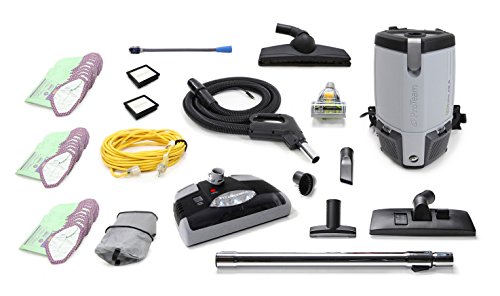 This is the Brand New Fully Loaded New ProTeam ProVac FS6 backpack vacuum with the GV DELUXE attachment set, which includes: 50' cord, 30 additional GV bags, GV mini turbo attachment (This works great as a pet tool for vacuuming up pet hair, vacuuming stairs and hard to reach places, mattress, upholstery, cars etc.), 2 extra GV HEPA filters, GV inflation tool, ProTeam 1 - 1/2" heavy duty Multi surface Floor tool, Duster brush, Crevice tool, Upholstery tool, 2 tool extension wands, heavy duty tool hose, and the new GV Turn & Clean tool for use on hard wood and carpet. The ProVac FS6 comes with a 5 year motor warranty.