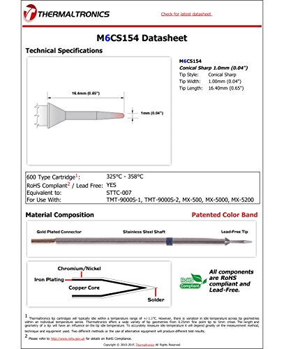 Thermaltronics M6CS154 Conical Sharp 1.0mm (0.04") interchangeable for Metcal STTC-007