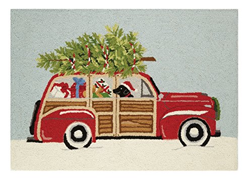 Peking Handicraft Station Wagon Area Rug Pillow, Red/Green