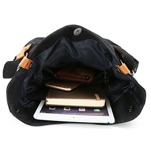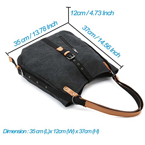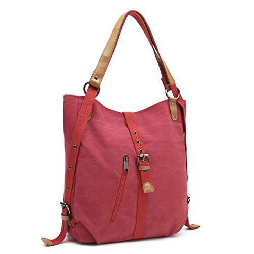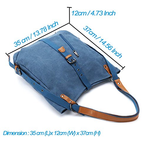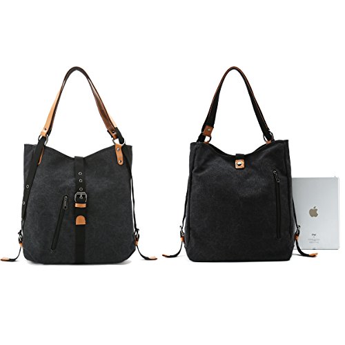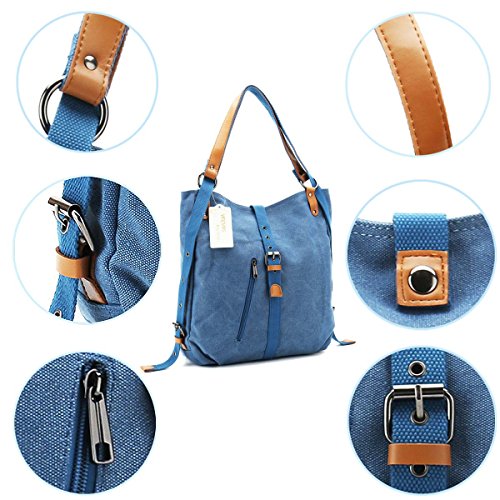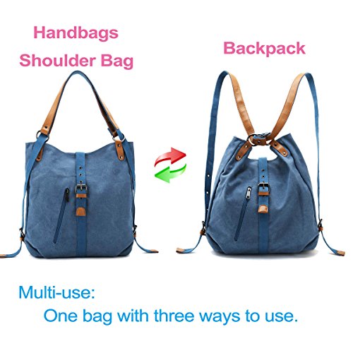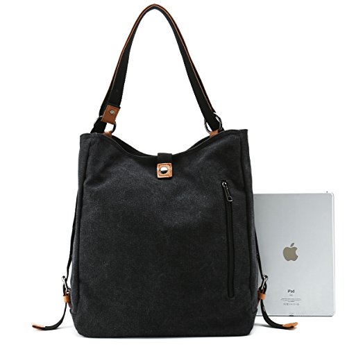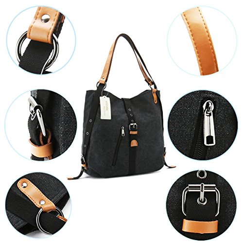 -. Feature : [Handy and Switchable Style]: Canvas shoulder bag with 2 adjustable straps can be switch to use as backpack, shoulder bag and top handle bag, you also can easily to change the bag's style at any time. / [Large Capacity]: Our canvas shoulder bag with main-pocket, iPad pocket, passport pocket, two zipper pocket, large enough for the iPad, memo notebook, magazine, phone, wallet and etc. Small zipper pocket can place your small essentials, like lipstick, perfume and power charger. / [Materials and Sizes]: Made of canvas outside, polyester inside, microfiber leather strap with rivet connection, strong and sturdy. Dimensions: 14.7"L x 3.94"Wx 14.96"H. Shoulder strap length: 14.96". Weight:595g. / [Stylish Bag]: Switchable backpack, shoulder bag and handbag's design focus on fashion and simple style, better to match your wearing and the comfort for using. Perfect for day trips , weekend travel, shopping, working, business, dating, outdoor camping, school etc. / [Warranty]: We guarantee our shoulder bag's quality and customer service. Fully Refund if you are unsatisfied, you have no risk to buy!