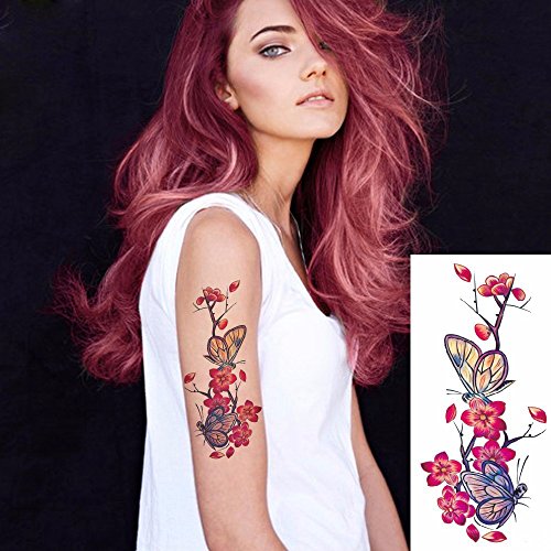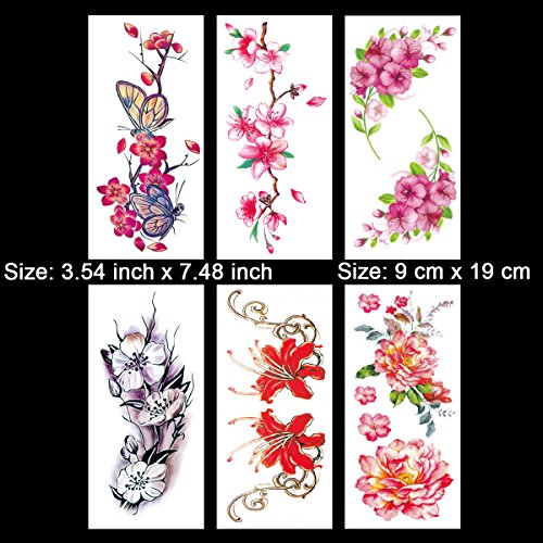 Kotbs 6 Sheets Large Temporary Tattoos Flower Paper Sexy Body Tattoo Sticker for Women & Girl Fake Tattoo (Lily, Peach, Plum, Peony)