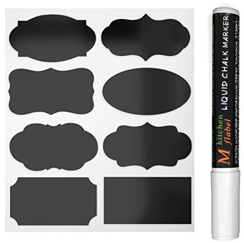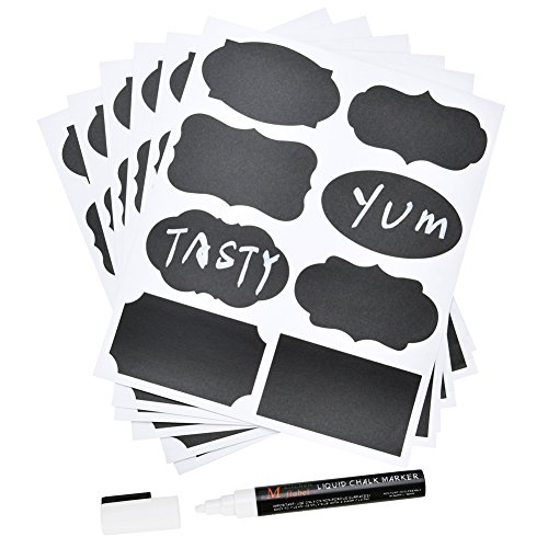 MFLABEL 48pcs Reusable Chalkboard Labels with Erasable White Smooth Liquid Chalk Marker - Premium Stickers for Jars