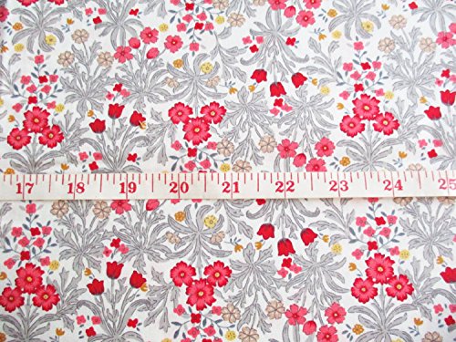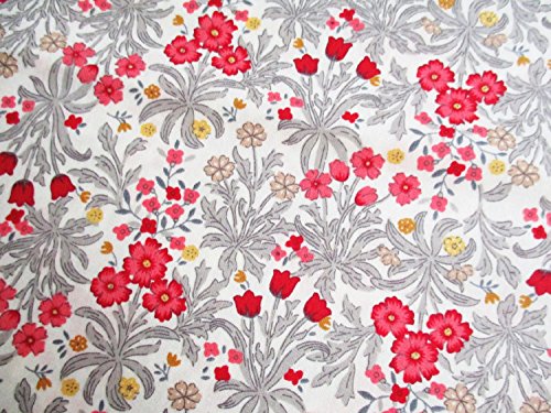 White Red Lucky Flower Red Tulip Bunch Yellow little flower on White Fabric By The Yard (CT541)