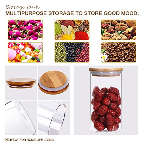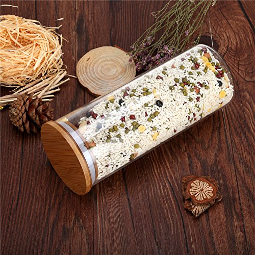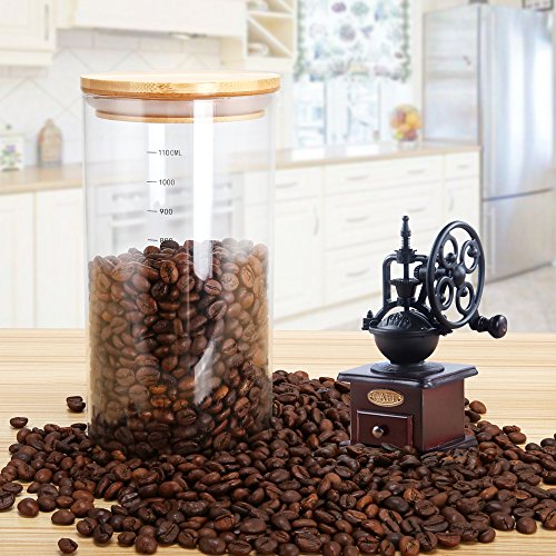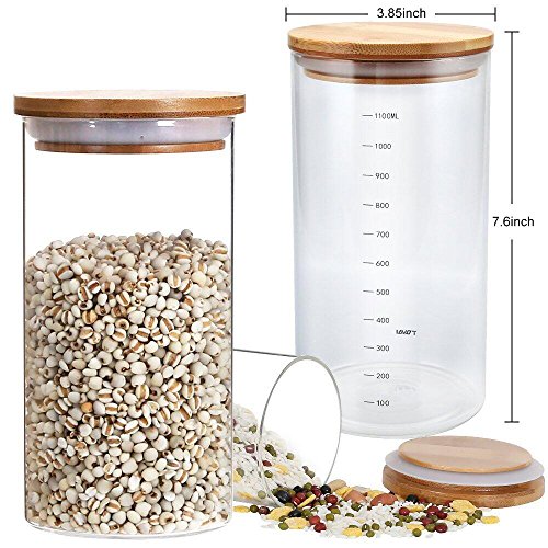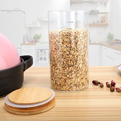 Glass Canister Storage Jar Container with Natural Bamboo Airtight Lid and Silicone Sealing Ring,Kitchen Canister of Coffee Tea Food(1100ml/38oz)