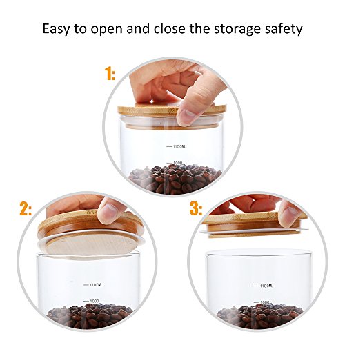 - Non-toxic high-grade borosilicate glass with natural bamboo lid and BPA-Free silicone sealing ring, the environmental-friendly design create an airtight and healthy environment for storing