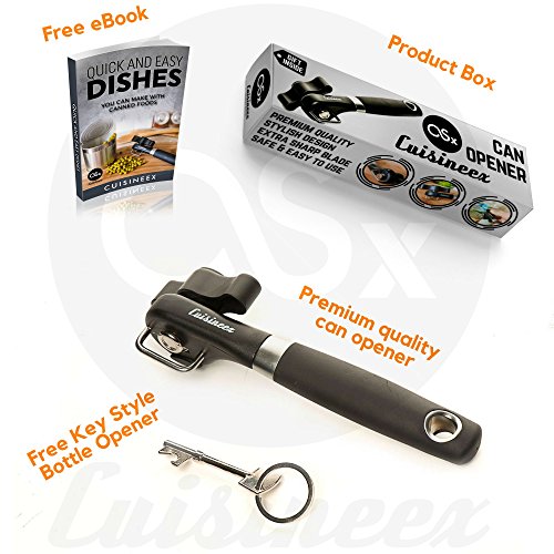 - A CAN OPENER MADE TO LAST! – Contrary to those poor quality can openers that stop working after a while, ours is made from sturdy, durable stainless steel and it’s going to make a long-lasting and valuable addition to your countertop. This handheld can opener also features a hanging loop for easy storage and it is compact enough to fit in your kitchen drawers!