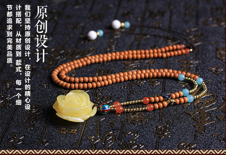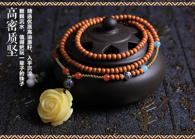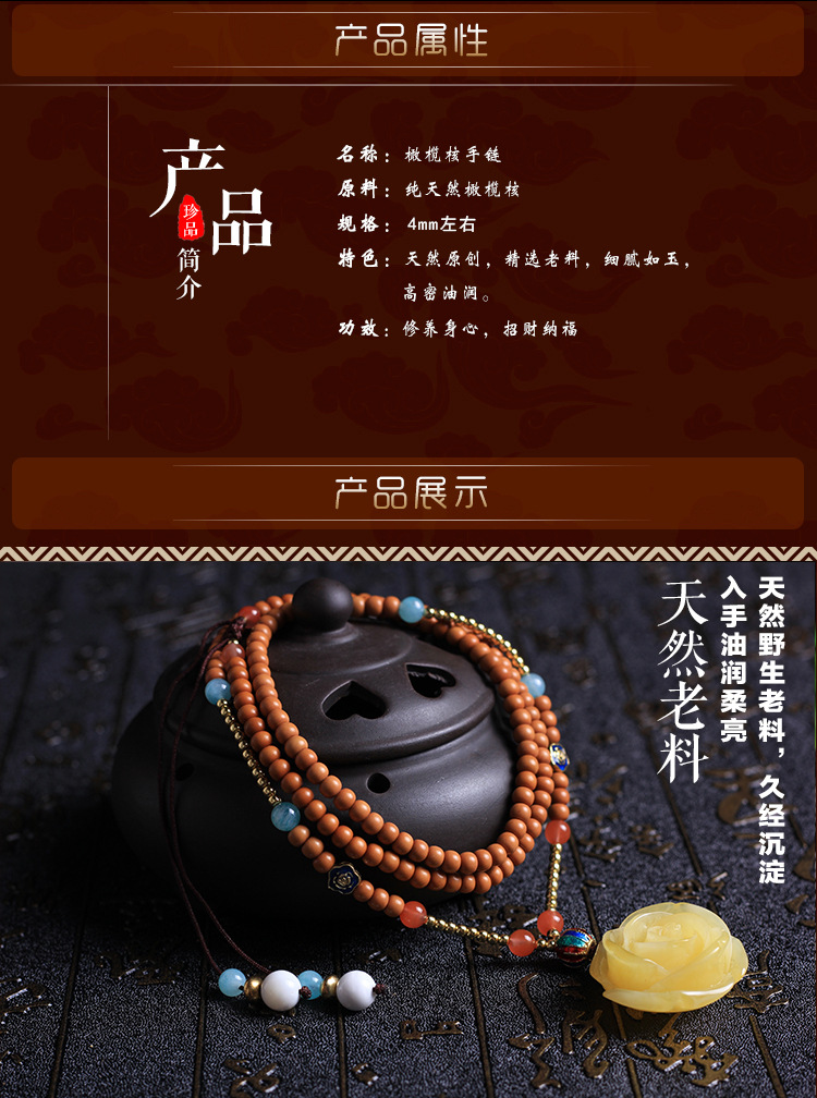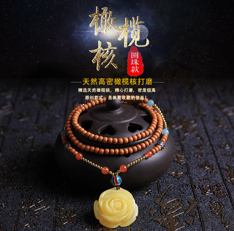 原创佛珠4mm橄榄核圆珠108颗佛珠手链南红二代蜜蜡花女项链
