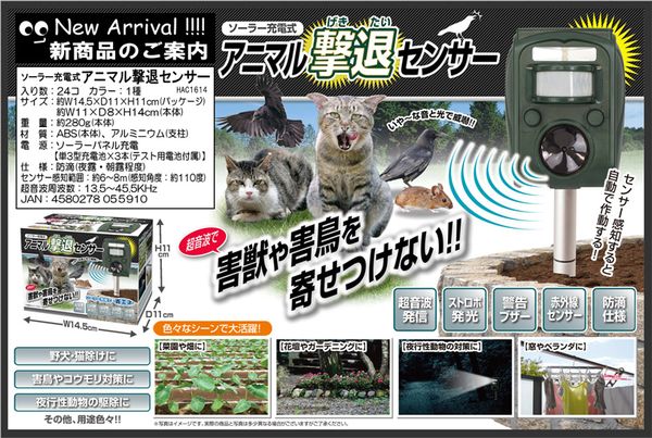 ●超音波で害虫を寄せ付けない。超音波で害獣や害鳥を寄せ付けない、防滴仕様のセンサーです。