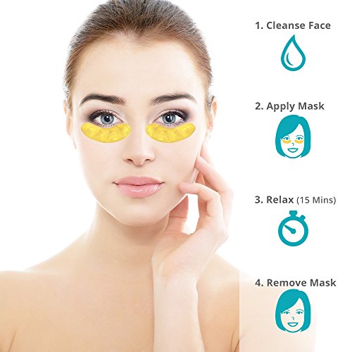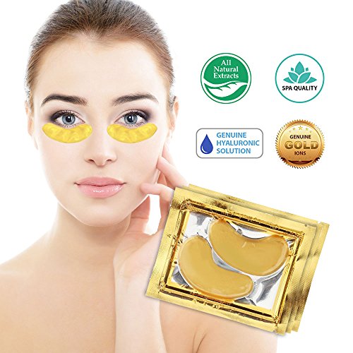 Our gold eye patches contain pure 24K gold and colloidal gold which will expel harmful toxins while refreshing your skin to delicately lift and firm the appearance of your eyes. The combination of gold, collagen and hyaluronic acid smoothes wrinkles, reduces puffiness and lightens the dark circles from under the eye. To use: Gently lift the gel patches from the pack and apply onto clean, dry under-area of your eye. Relax and let the patch work it's magic for 10-15 minutes. Remove patches and discard to see visible improvement to eyes.Feature