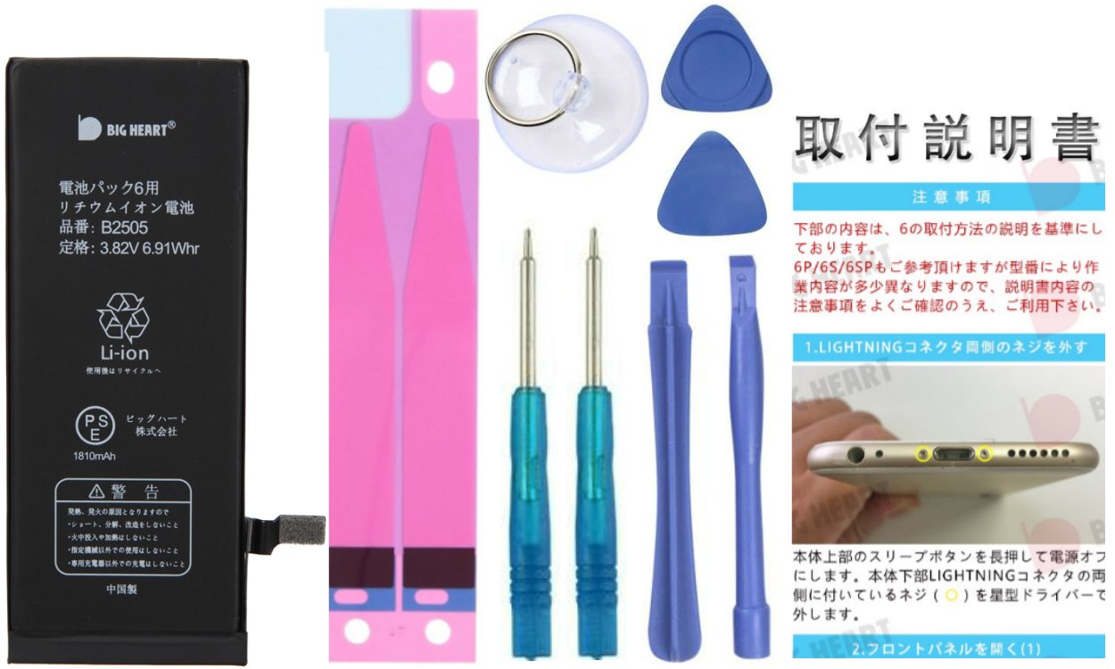 • 付属品 バッテリー本体/取り付け工具セット/専用テープ1枚/取付マニュアル