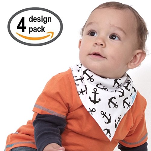 BABY BANDANA DROOL BIBS | CUTE SUPER ABSORBENT BABY BANDANA BIB GIFT SET FOR BOYS & GIRLS | SOFT BABY BIBS WITH SNAPS - IDEAL FOR TEETHING - MODERN & TRENDY - UNISEX - 4 PACK