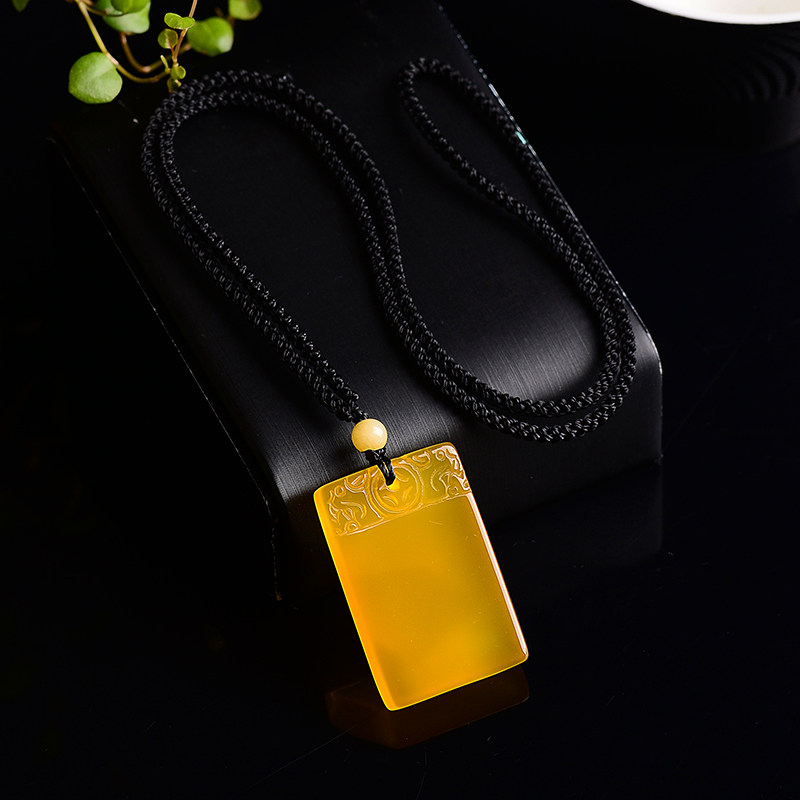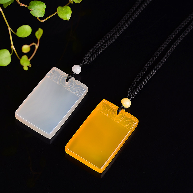 云海石平安无事牌吊坠 水晶饰品男女款橘子石平安无事牌挂坠