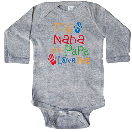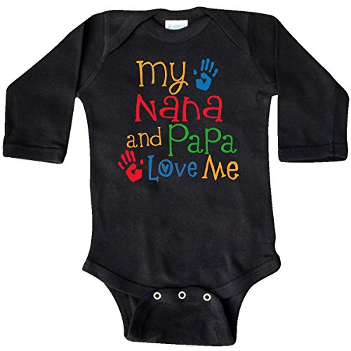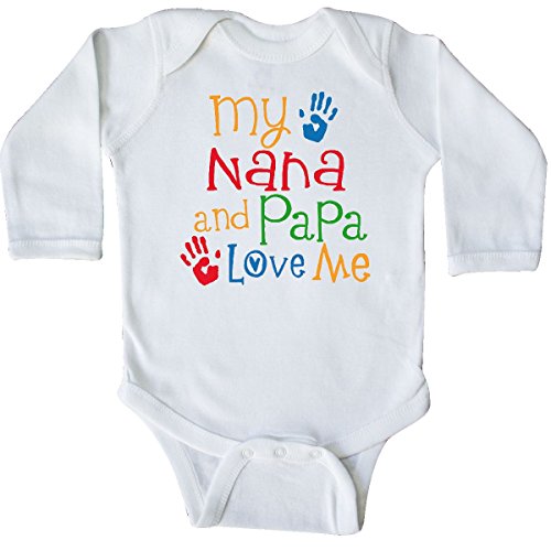 Product Description Cute my Nana and Papa love me Long Sleeve Creeper has colorful handprint design for a boy or girl from their grandparents. Fun grandson or granddaughter gift idea. 0