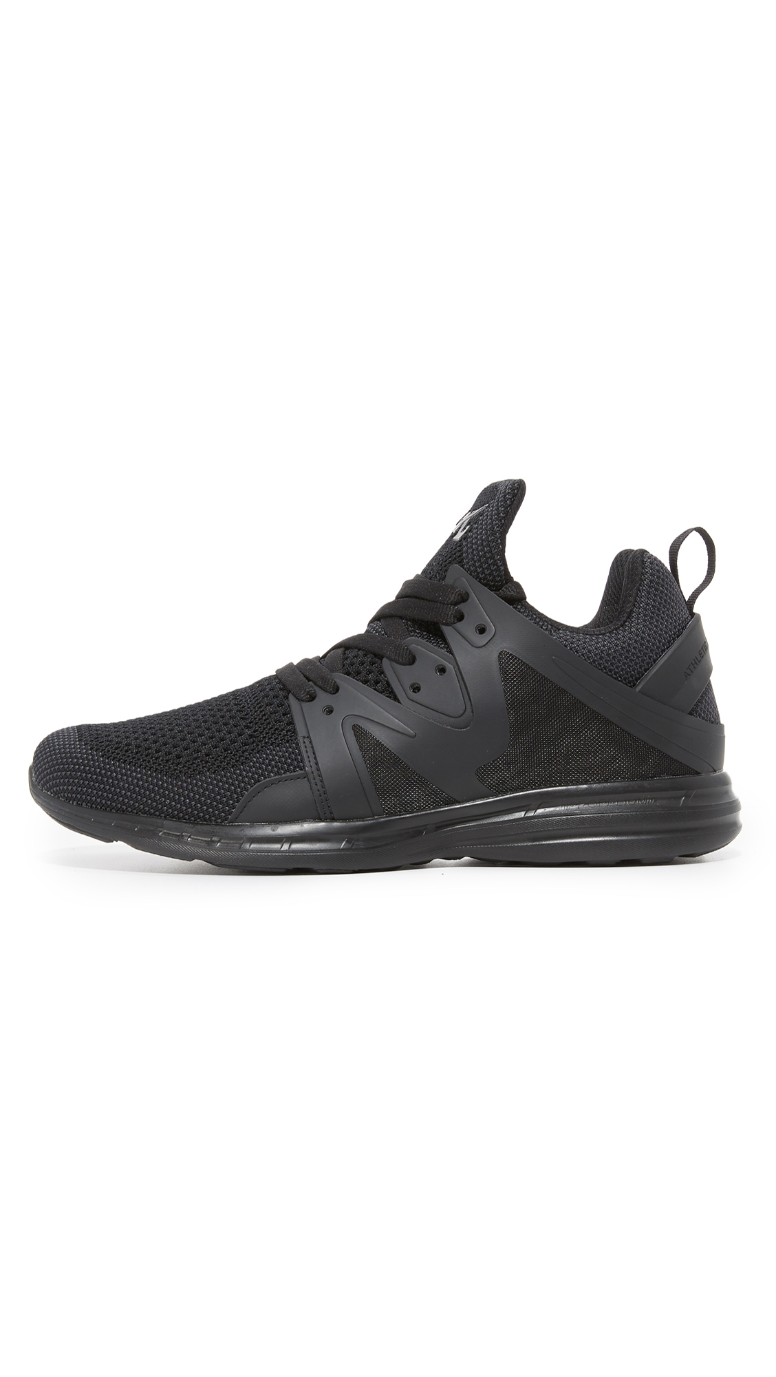 Breathable APL: Athletic Propulsion Labs running shoes in a comfortable padded nylon design. Lace-up vamp. The outsole features the brand's proprietary Propelium™ compound, which is designed to increase friction efficiency. Logo lettering at the tongue. Cushioned insole.