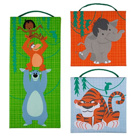Disney "The Jungle Book" Canvas Wall Hanging Set- with Mowgli, Baloo and King Louie, Shere Khan, and Junior (Largest: 16 3/4'' H x 7 1/2'' W x 1'' D)