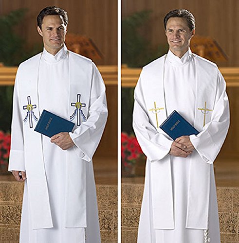 Studio : AT001 Publisher : AT001 Binding : Jewelry Product Description This exclusively designed stole has symbols for both wedding and baptism embroidered on opposite sides. Fully lined with reinforced seams, this stole offers excellent value for an unbeatable price. -- Polyester -- 110" Long Shop the 0