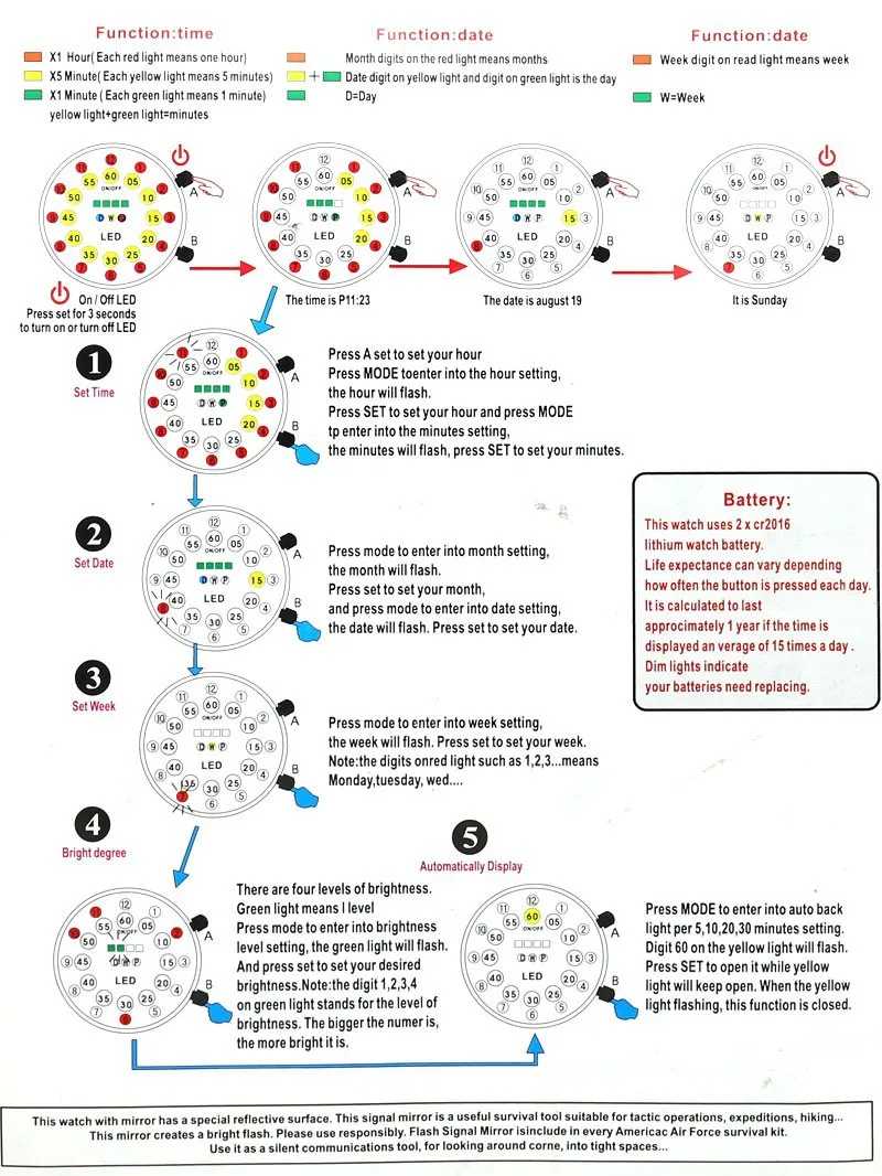 Feature:Auto Date,Complete Calendar,Back Light,Luminous