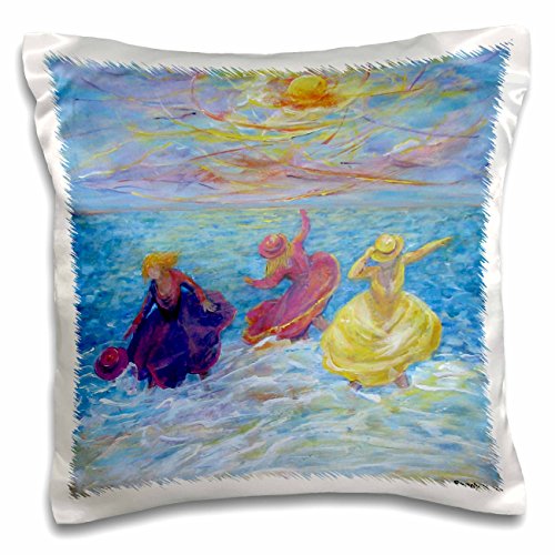 3dRose Hats Off, Girls play in the surf - Pillow Case, 16 by 16-inch (pc_66359_1)