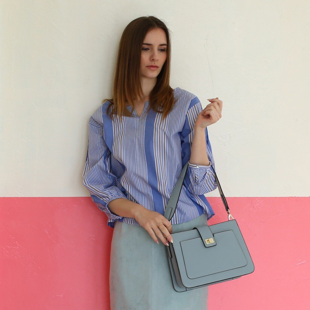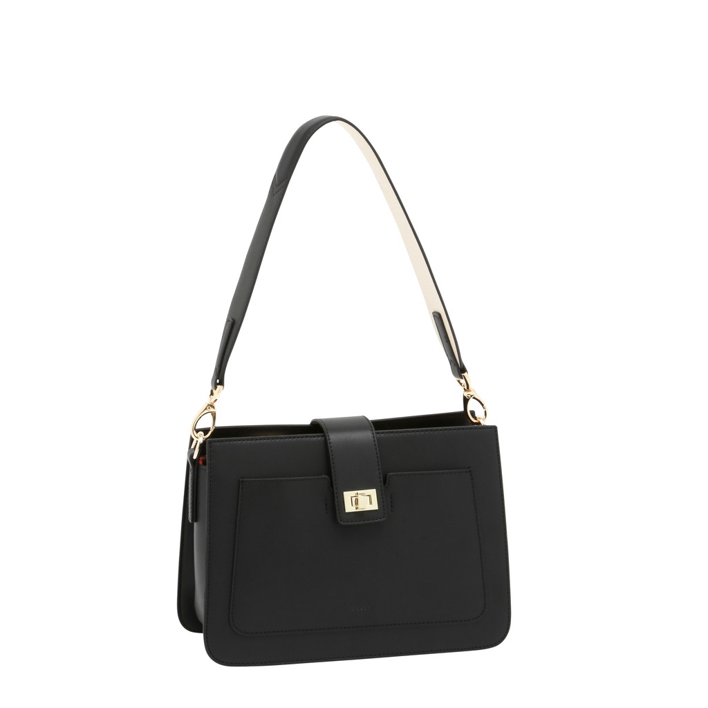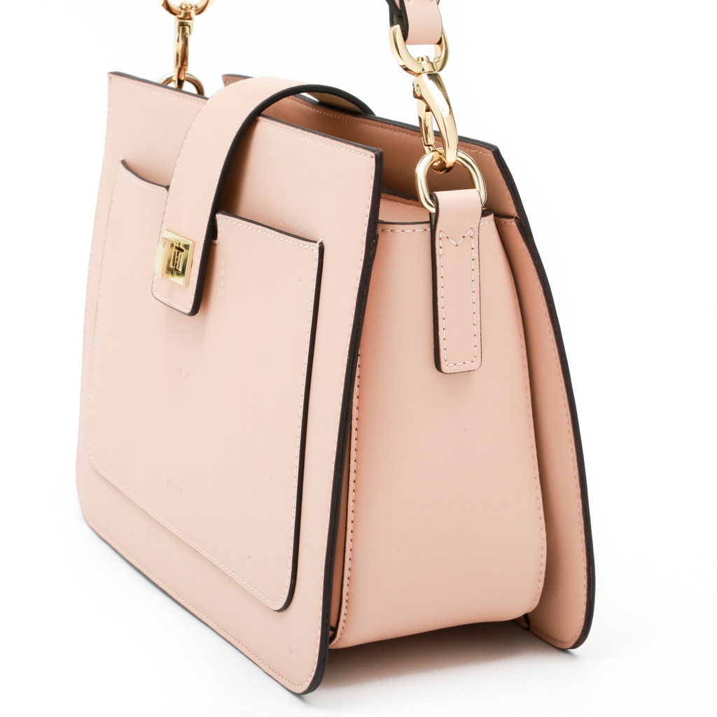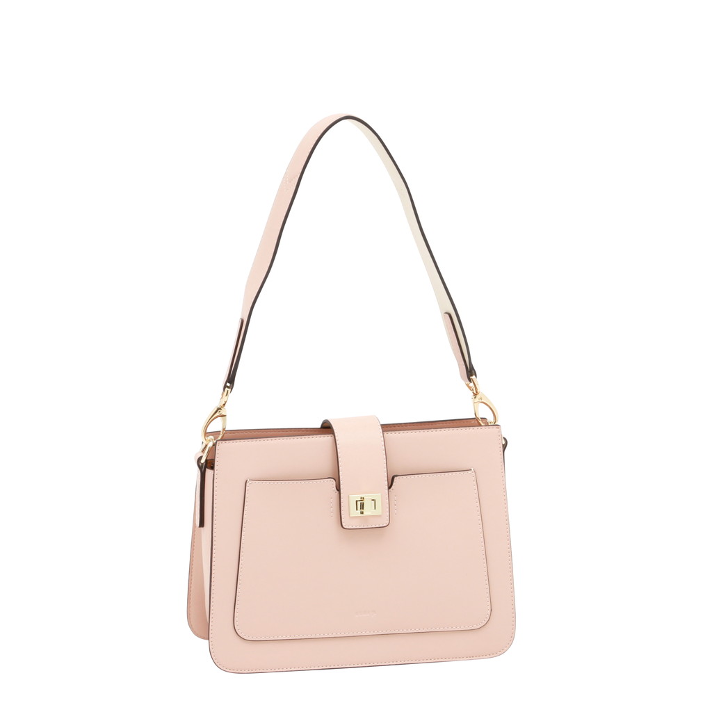 コンパートメントされた内部や肩になじみやすいワイドなショルダーなど実用性に優れた理想的なハンドバッグ。2トーンのワンハンドルはフェミニンな印象を放ち、コーディネートに華を添えます。なめらかなで艶のある表面とは対照的にライニングにはスウェード加工のポリエステルを使い、リュクス感を加えています。