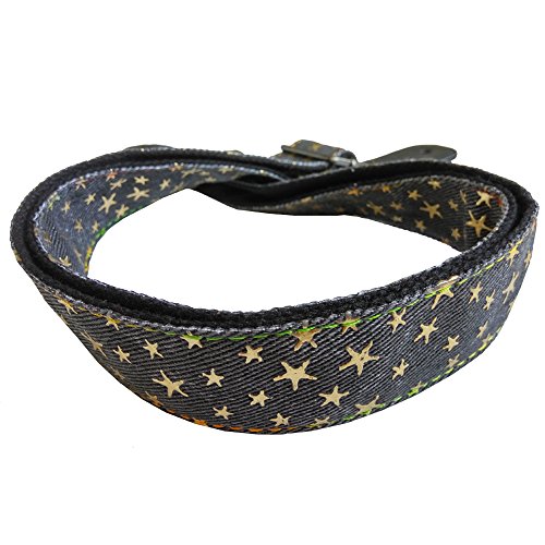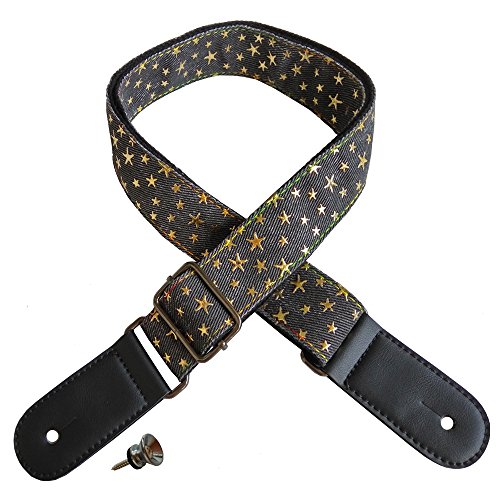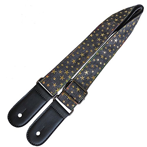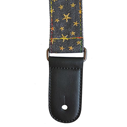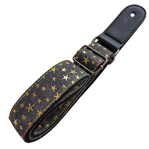 Xinlink Professional Adjustable Ukulele Shoulder Strap Black Denim Star Pattern with Button and PU Leather Ends for All Size Small Hawaiian Guitar Music Accessories